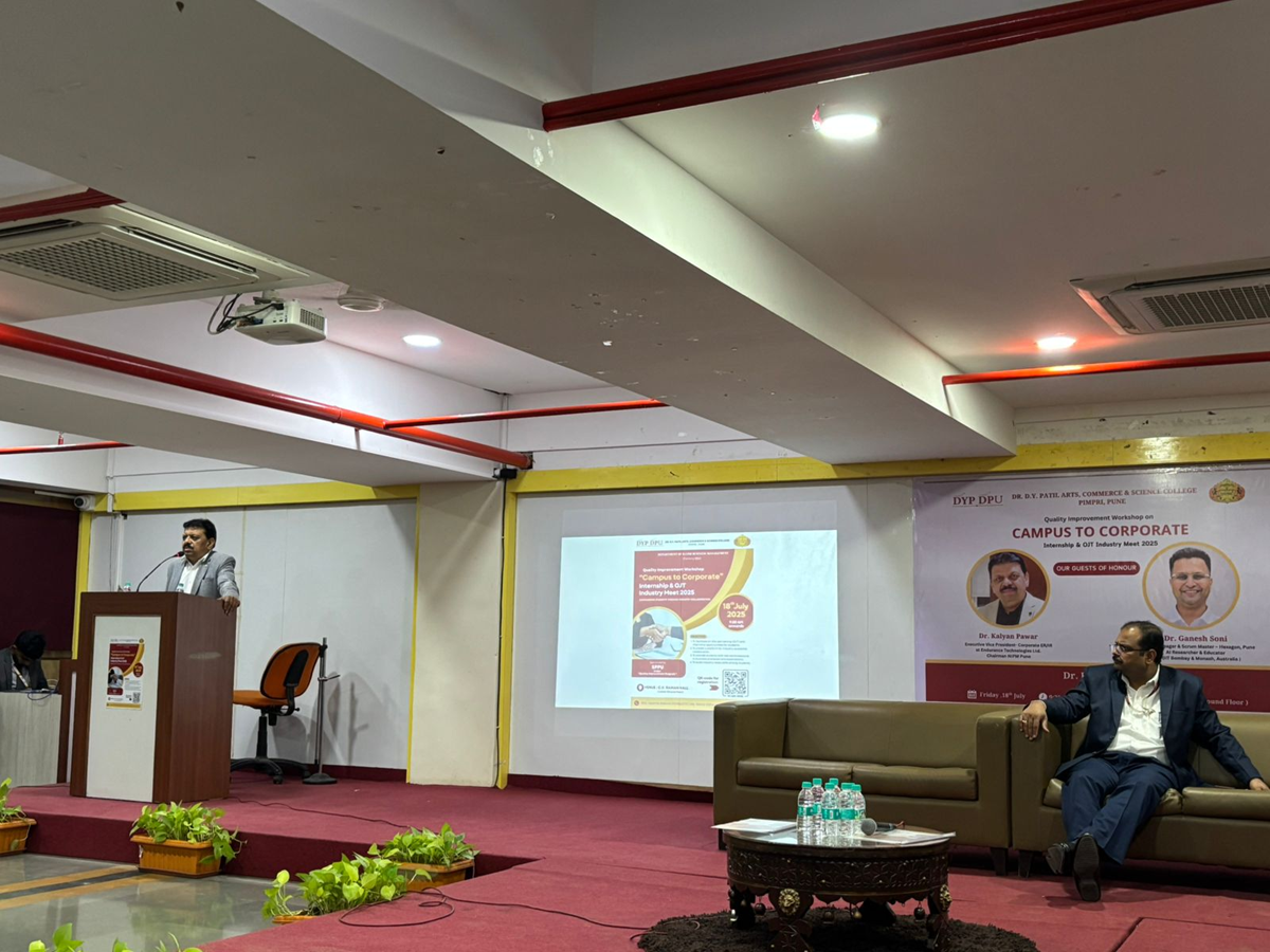 Mr. Kalyan Pawar was invited as Chief Guest by Dr. Dy. Patil Arts, Commerce and Science College Pimpri Pune for the Quality Improvement workshop on " Campus to Corporate " Internship and OJT Internship Meet 2025 on Friday 18th July 25 at their Campus