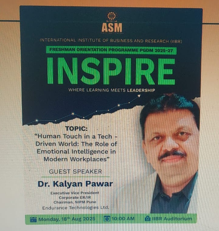 • Dr.Kalyan Pawar (Executive Vice President, Endurance Technologies) shared insightful thoughts on "Human Touch in a Tech-Driven World: The Role of Emotional Intelligence in Modern Workplaces", reminding students that empathy and emotional intelligence are key drivers of success in today's fast-paced corporate world.